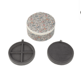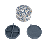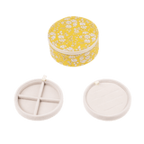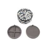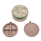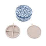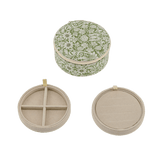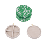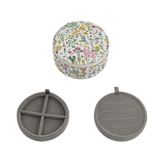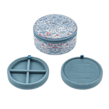 These round jewellery boxes are made with classic and timeless Liberty's fabrics. They have 2 dividers ideal for putting rings, earrings, charms, bracelets or necklaces!