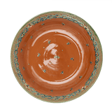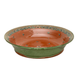 Brown glaze inside with olive leaf motifs and olive branch along the border, green on the outside.