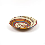 These decorative plates are hand-woven out of telephone wire by Zulu women in South Africa. It is traditional Zulu work and are made from coils of telephone wire wrapped around a solid metal core, to define its shape.