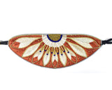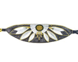 The hand embroidered bracelets are made through a rare embroidery technique from India,. They reflect exceptional craftsmanship and expertise which was normally applied in the making of Indian ceremonial clothing and army uniforms. By creating these bracelets, this traditional technique transcends through generations today.