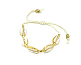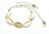 We have 3 different patterns on our bracelets with cowrie shells. They all have adjustable cotton straps. Great look for the summer!