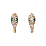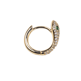 These elegant Snake shaped earring hoops are made of Gold plated brass, with green encrusted Zirkonia stones.