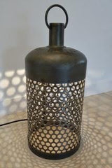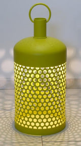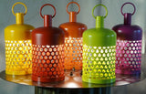 These beautiful and very creative lamps are made by French artist Francois Flageul. He perforates traditional gas bottles and paints them in various colours. The bulb is fixed at the top and is not visible- and the lamp is easy to move indoors or outdoors with an extension cord. They create beautiful light through the reflection of the perforations on the surfaces. Each one is signes at the bottom by the artist.